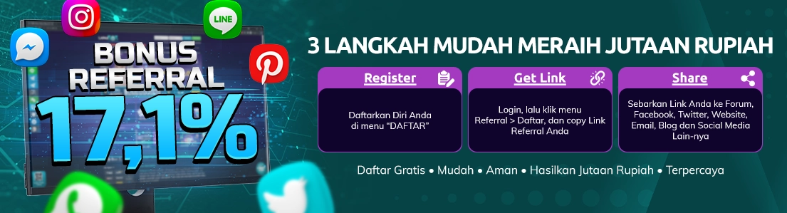 Referral system tidak dipungut biaya apapun. Hanya dengan modal online saja setelah itu Anda hanya tinggal mengecek keuntungan Anda yang dapat dilihat secara online kapanpun dan dimanapun. Register sekarang juga dan referensikan Link Referral Anda